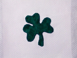 Let it be known far and wide that upon this day, I - Christine of Quilt Talk - have progressed from a beginner to an intermediate quilter. At the behest of a fellow Quilt Chick, I have upgraded my profile self-description. I offer you here, photographic evidence of said achievement: one machine-appliqued shamrock.